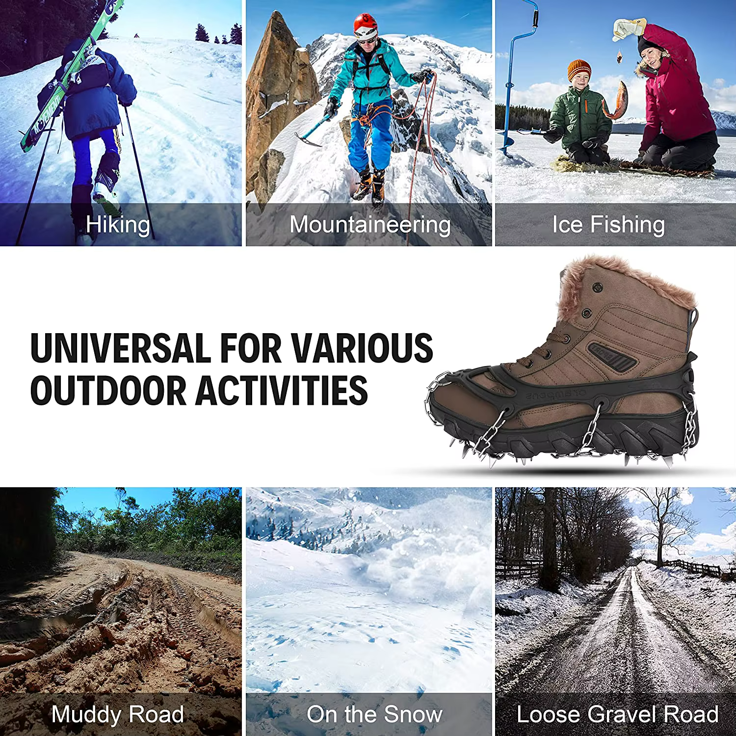 Use these snow traction cleats for hiking, walking, or work.